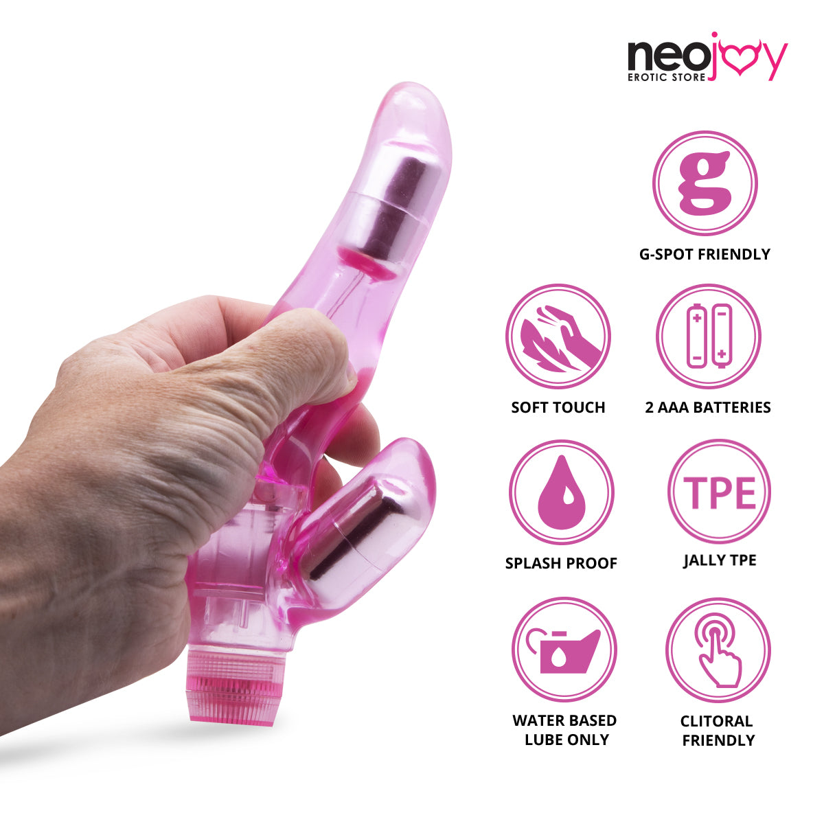 Neojoy Double Joy Jelly Rabbit Vibrator Multiple Speed Functions Soft TPE