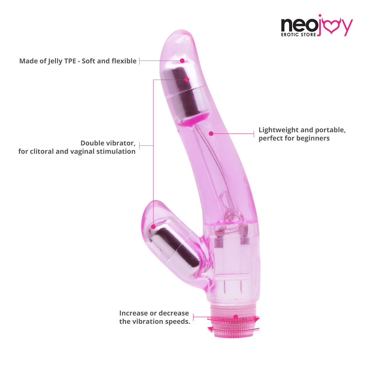 Double the stimulation, double the fun! For orgasms twice as intense, the Double Joy Jelly Vibe from Neojoy is your personal helper .