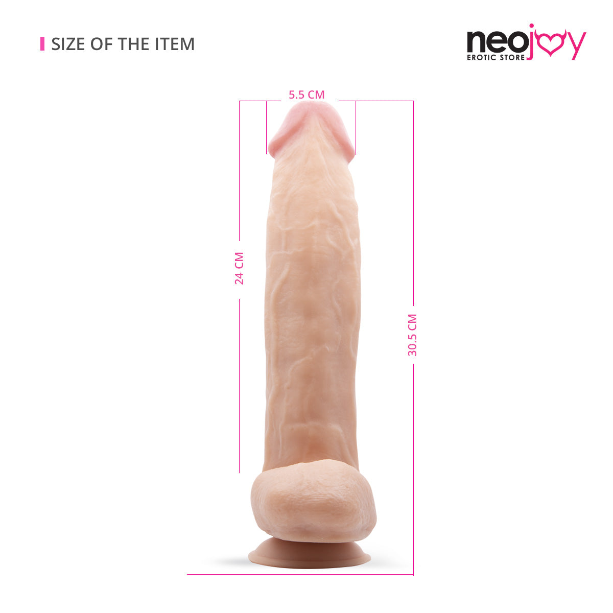 11 inches of pure pleasure, perfect for solo or couple play. A real-feel toy, designed to fulfil your desired and needs. Made from TPE, this toy is gentle with your skin and very flexible, allowing you to use it in different positions and places. The powerful suction cup can be attached to any smooth surface (bathroom tiles, floor etc), for hands-free fun. With balls and huge veins, this realistic dong wants to give you the most powerful orgasms you've ever had. Easy to clean, this toy is 100% waterproof and can be used in the bath tub or shower, for an increased pleasure. The 11" Super-Real Dildo from Neojoy feels so realistic, you'll forget it's not made from real flesh.