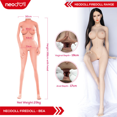 Fire Doll - Bea - Silicone TPE Hybrid Sex Doll - Tongue included - 168cm - Natural
