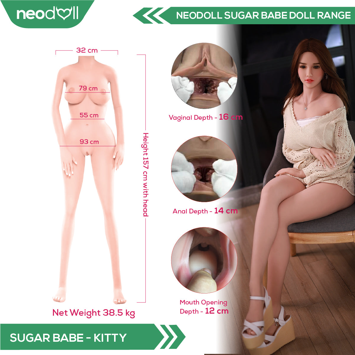 Sex Doll Kitty | 157cm Height | Natural Skin | Shrug & Standing & Uterus & Gel Breast | Neodoll Sugar Babe