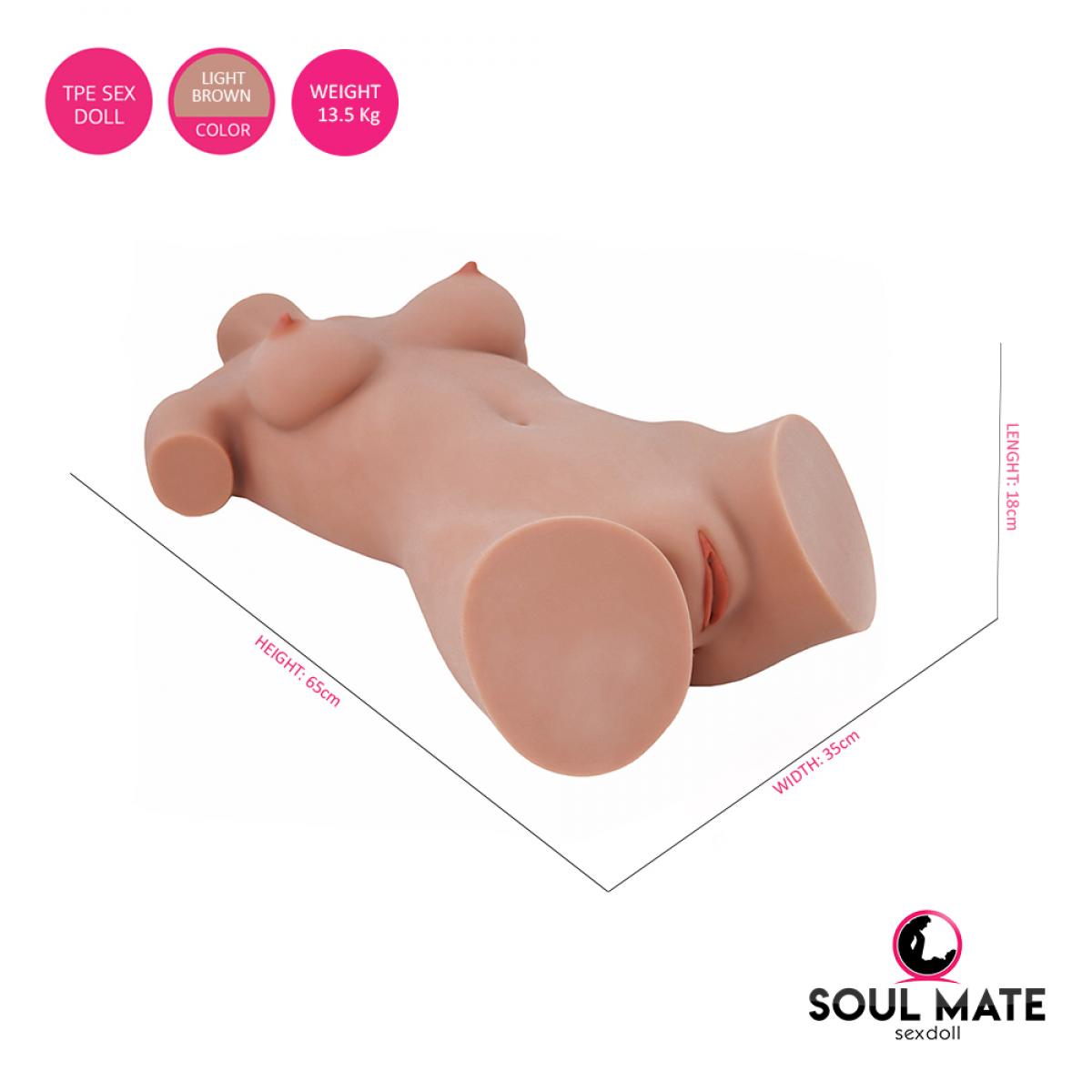 This SoulMate torso is perfect for those who want to try a smaller version of a full sex doll with arms and legs. Easily portable thanks to its size and weight. (Height: 65cm, Width: 18cm, Length: 35cm).